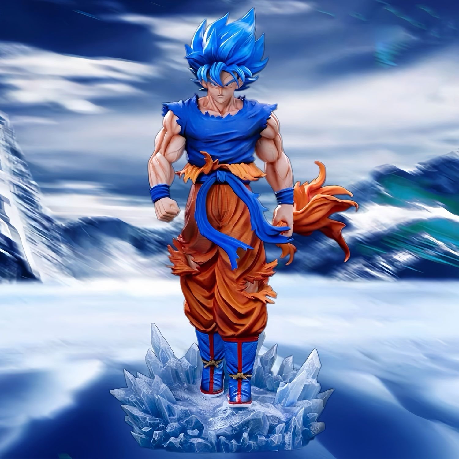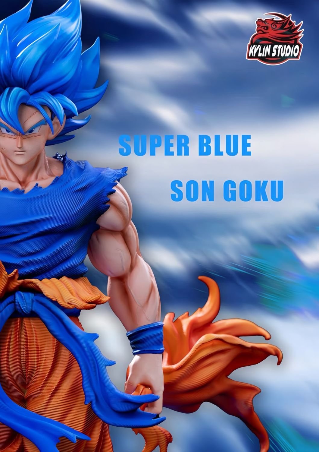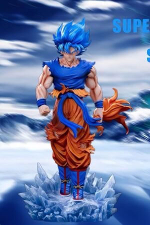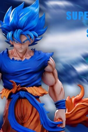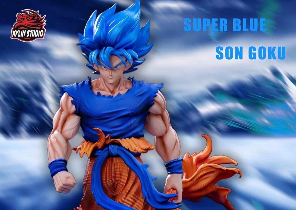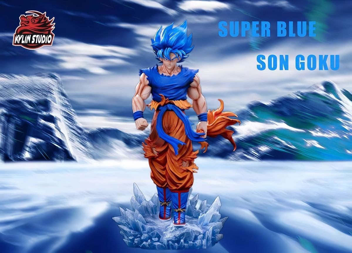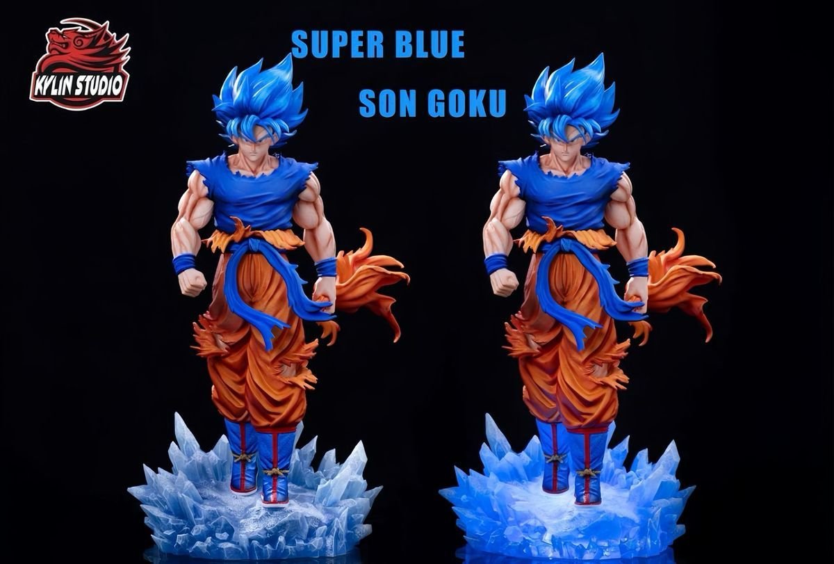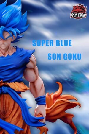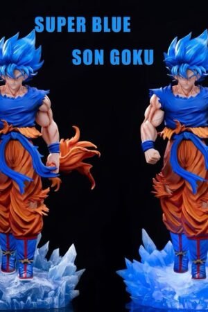 GK model figurine of Super Blue Goku from Dragon Ball with a double-headed dragon, 32 cm tall, a collectible gift for fans,