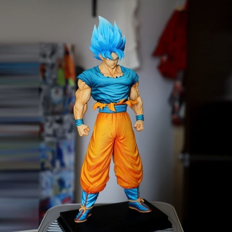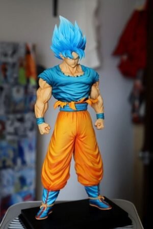 Super Blue Goku Plan B Dragon Ball Figure New Upgraded Face Sculpture Double Head Replacement Display Piece 31CM